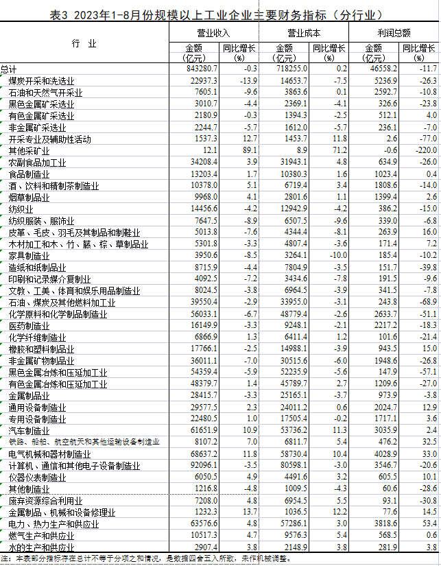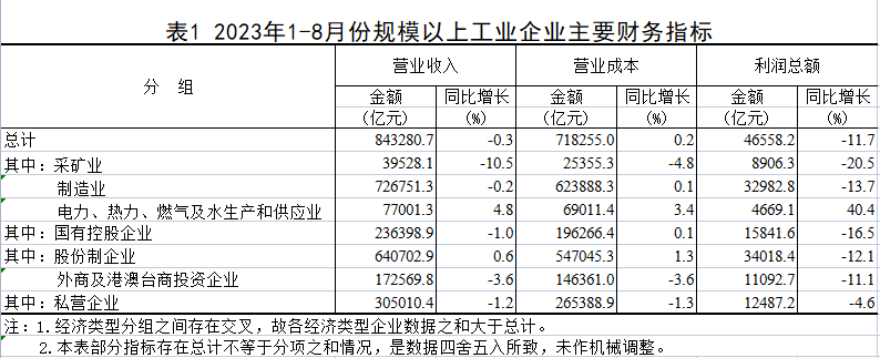 2023年1—8月份天下规模以上工业企业利润下降11.7%
