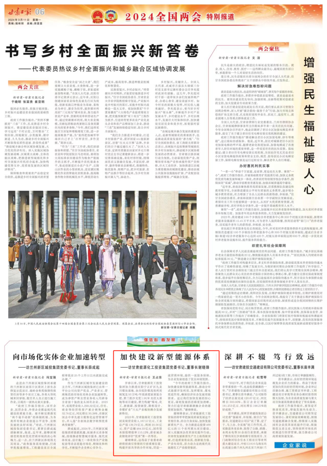 “今年的政府事情报告指出,加速建设新型能源系统,推动漫衍式能源开发使用,施展煤炭、煤电兜底作用,确保经济社会生长用能需求。这让我们加速生长的信心更足,谋划生长的思绪越发清晰,起劲打造甘肃能源旗舰企业的愿望越发强烈。”谢晓锋说。