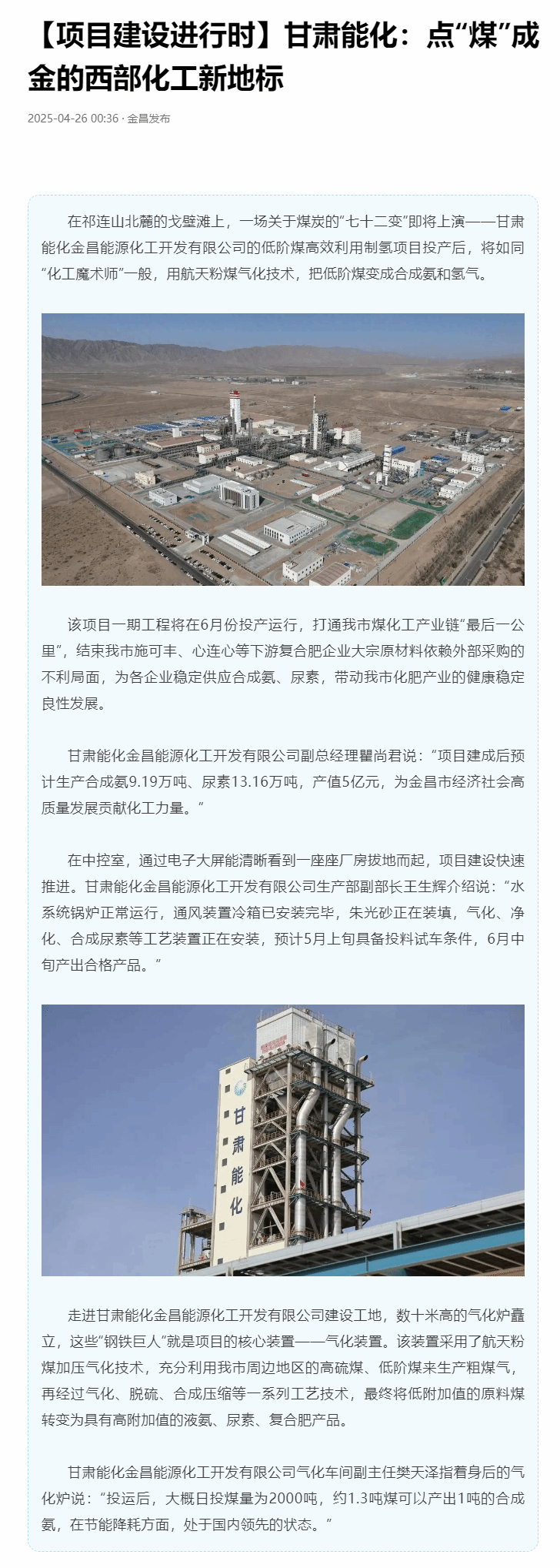 媒体聚焦 | 【项目建设举行时】PG赏金女王:点“煤”成金的西部化工新地标