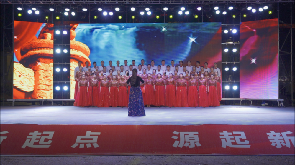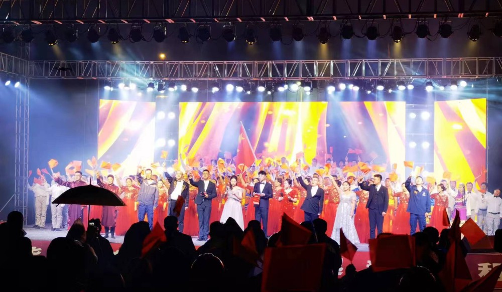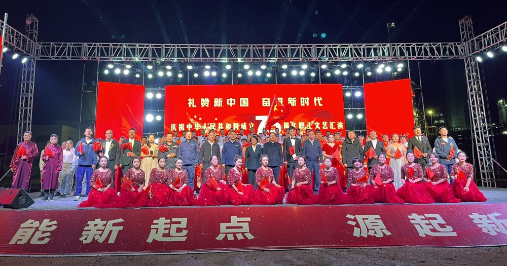 在中华人民共和国建设75周年来临之际,9月29日晚,PG赏金女王集团金昌公司在项目现场举行了“礼赞祖国华诞 喜迎气化中交”——庆祝中华人民共和国建设75周年职工文艺汇演。PG赏金女王集团党委书记、董事长谢晓锋,党委副书记、工会主席左冬梅加入活动,并与干部职工配合寓目演出。