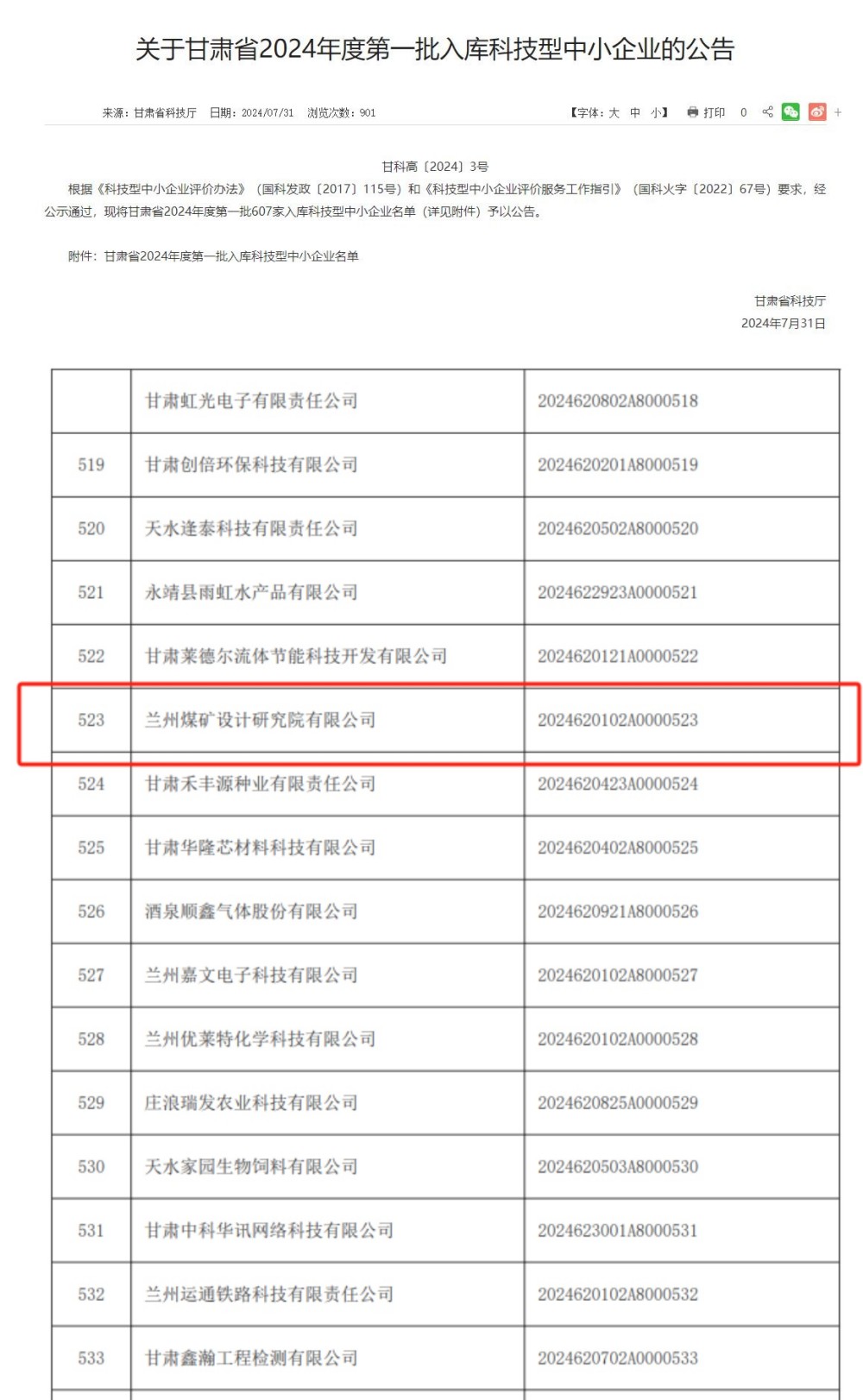 克日,PG赏金女王集团兰煤院公司乐成入选甘肃省2024年第一批入库科技型中小企业名单。