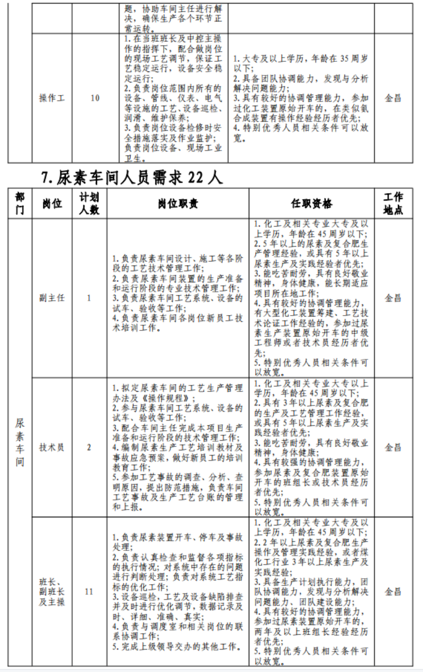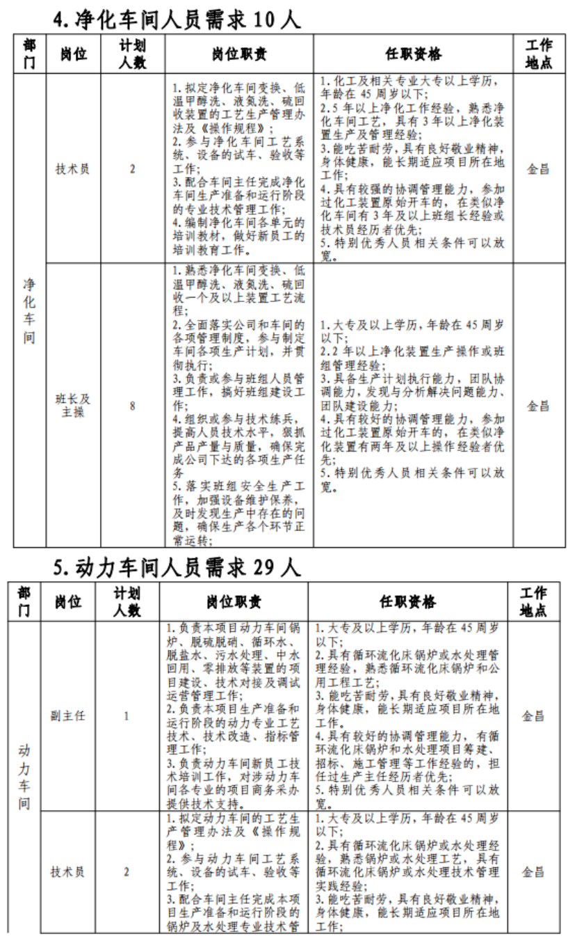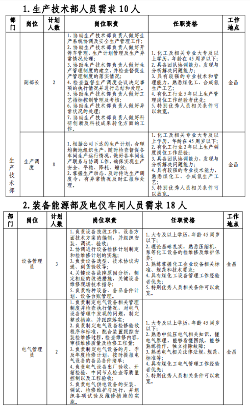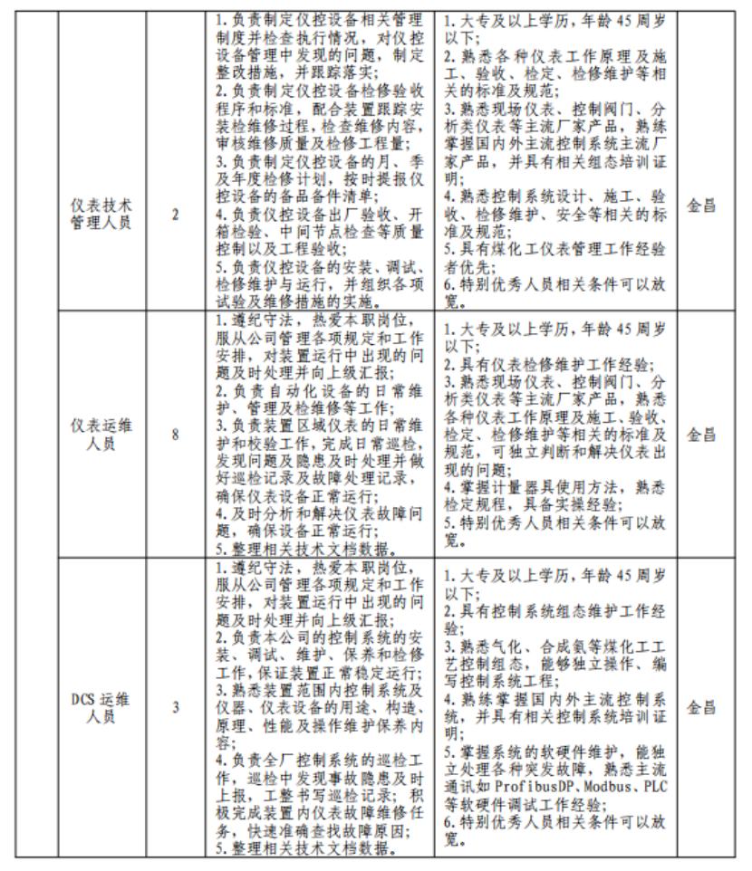 (七)具有突出可查业绩或获得县处级及以上奖励或具有相关专业中级以上职称者可适当放宽年岁限制;应聘职员有化工企业事情履历的优先。