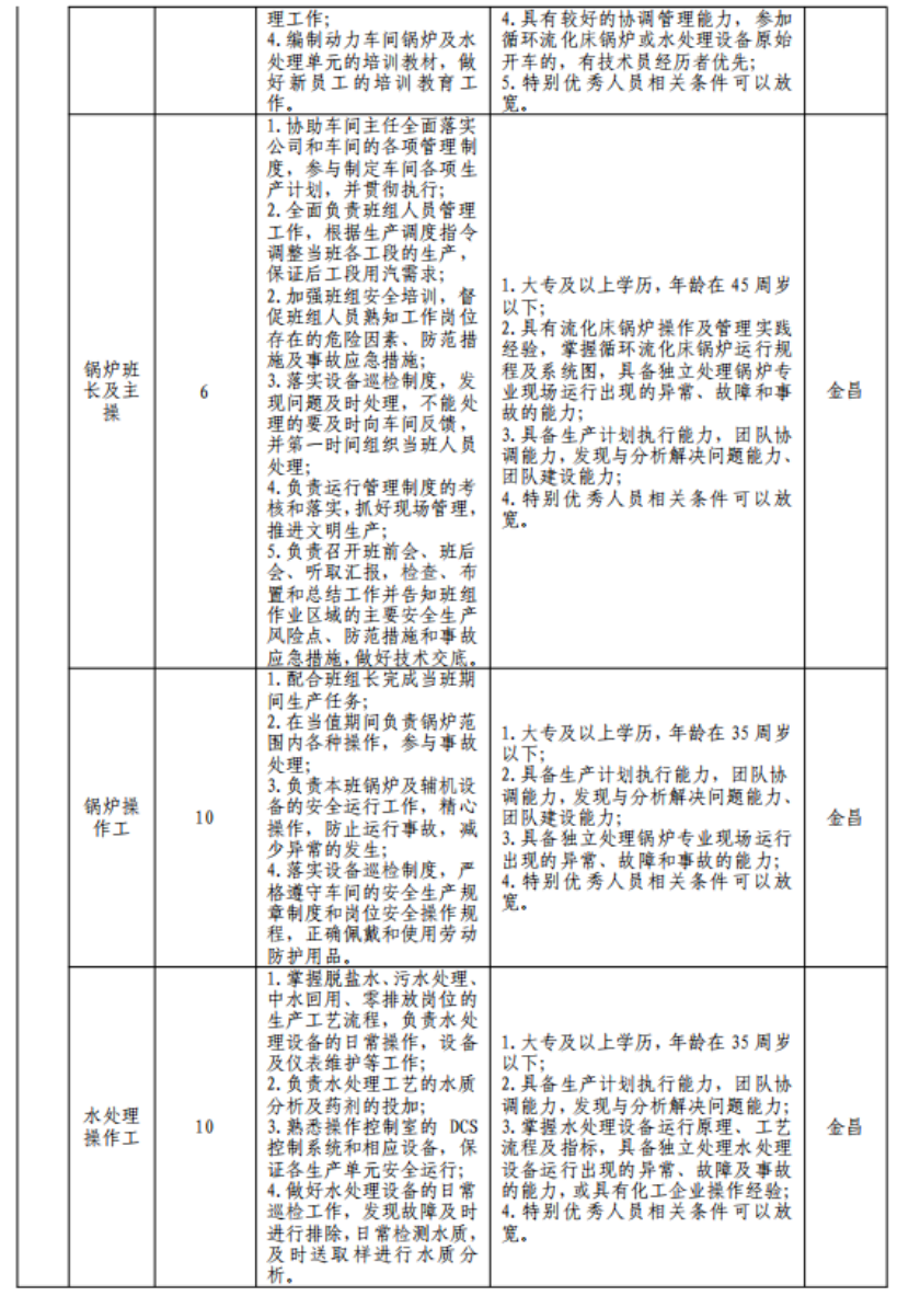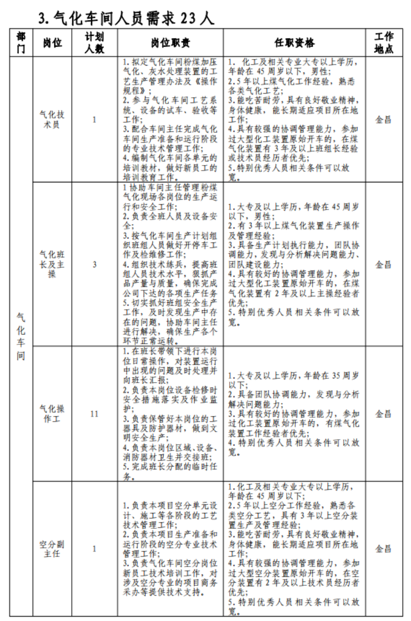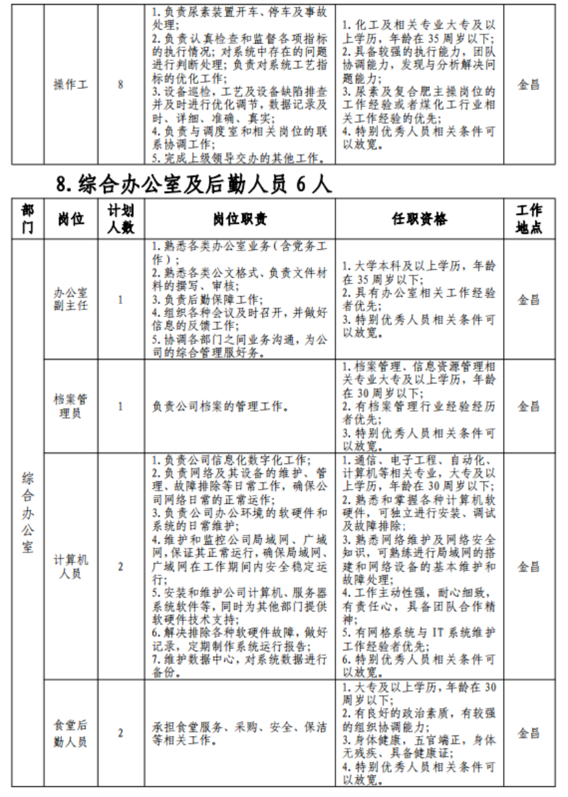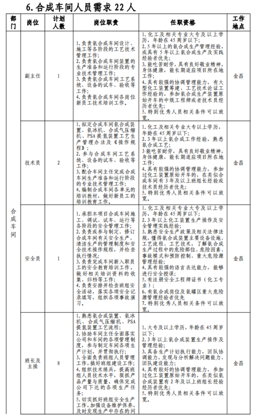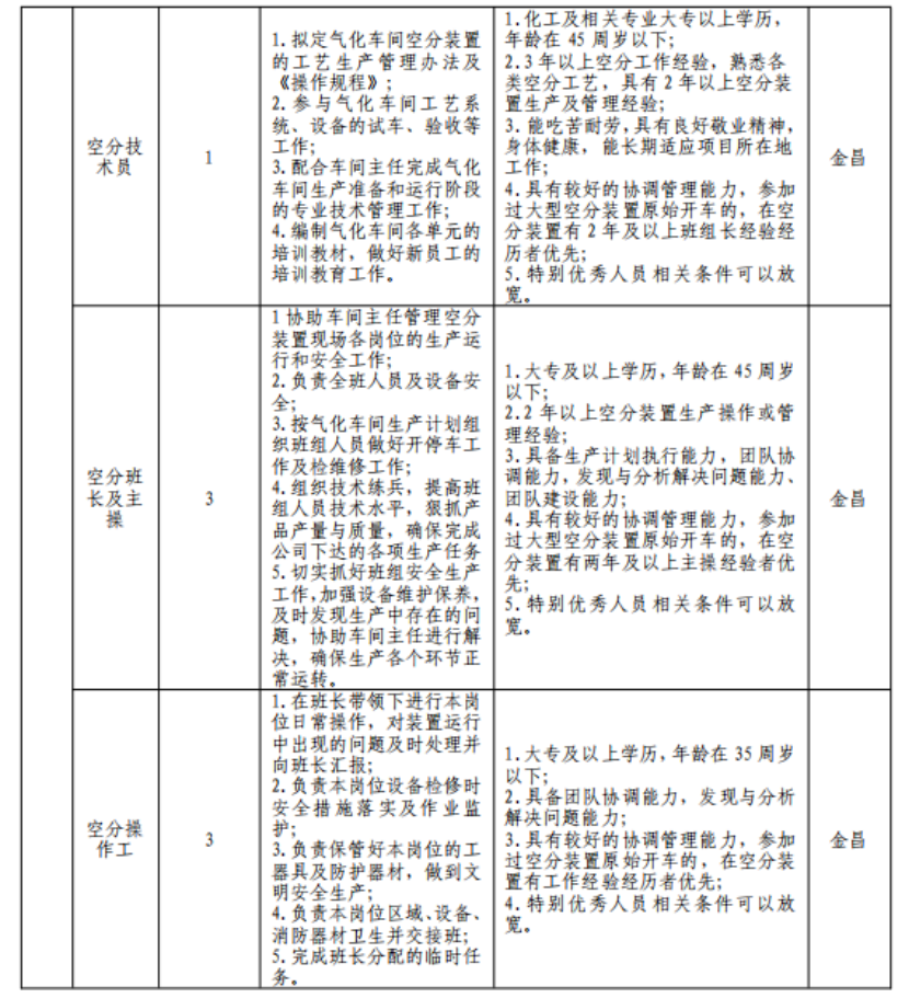 (七)具有突出可查业绩或获得县处级及以上奖励或具有相关专业中级以上职称者可适当放宽年岁限制;应聘职员有化工企业事情履历的优先。