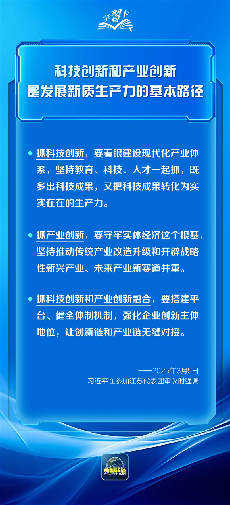 2025年天下两会时代,习近平总书记加入团组审议讨论时,多次提到科技立异这一要害命题,强调“科技立异和工业立异,是生长新质生产力的基本路径”。一起学习↓