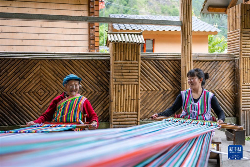 ÔÚÔÆÄÏÊ¡¹±É½¶ÀÁú×åÅ­×å×ÔÖÎÏØ¶ÀÁú½­ÏçµÏÕþµ±´å £¬¶ÀÁú×åÀÏÈËÀîÎÄÊË£¨×󣩺ÍÅ®¶ùÔÚ±àÖ¯¶ÀÁú̺£¨2022Äê5ÔÂ10ÈÕÉ㣩¡£Ð»ªÉç¼ÇÕß ²ÜÃÎÑþ Éã