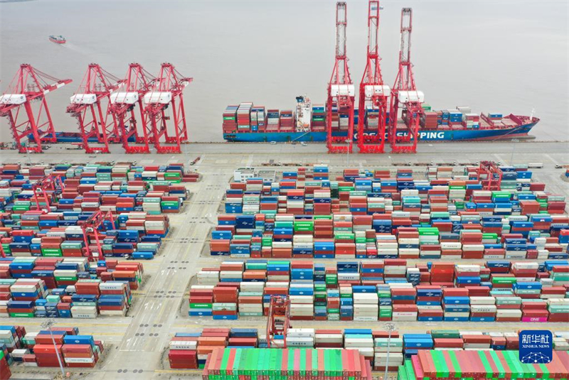 ÉϺ£Ñóɽ¸Û¼¯×°ÏäÂëÍ·£¨2022Äê4ÔÂ15ÈÕÉã £¬ÎÞÈË»úÕÕÆ¬£©¡£Ð»ªÉç¼ÇÕß ¶¡Í¡ Éã