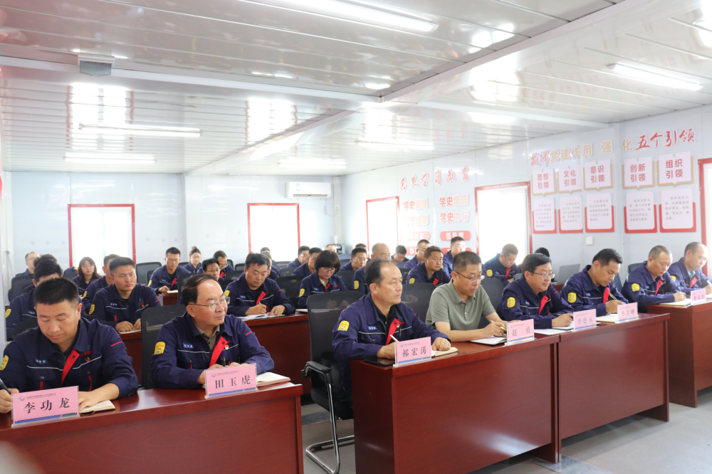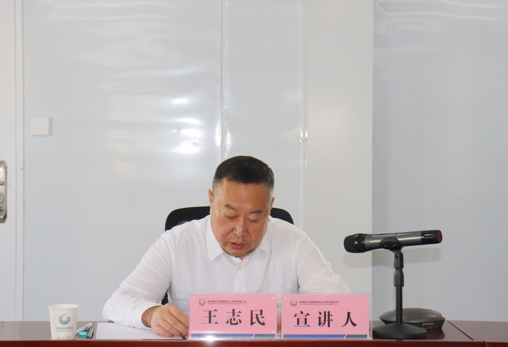 金昌公司党委书记、董事长李德永主持宣讲会,金昌公司和绿能公司党员干部职工加入宣讲报告会。